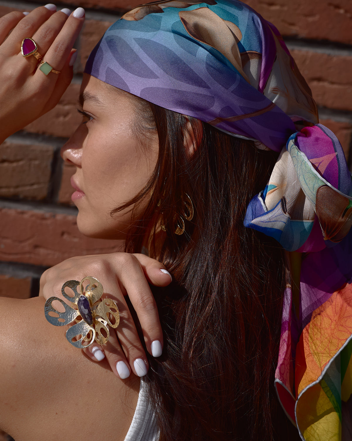 Whether styled as a chic neckpiece or an elegant accessory, these scarves are a timeless addition to your wardrobe. Explore the collection today and experience how Kiki’s silk scarves can transform your look with their blend of artistry, elegance, and functionality.